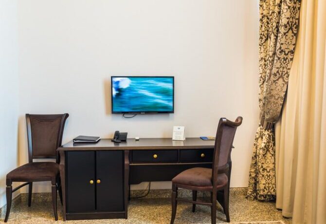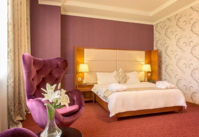 This luxurious 4-star hotel is located 700 metres from the airport. To accommodate guests prepared 16 rooms:single, double and suite. Pets are not allowed. From conveniences: Wi-Fi, concierge service 24 hours, elevator, transfer. Meals are provided by the restaurant. A continental breakfast is served in the morning. There is a children’s buffet. Guests can relax in the shared lounge area.