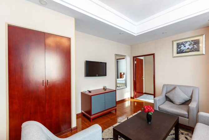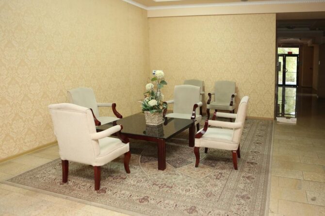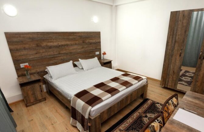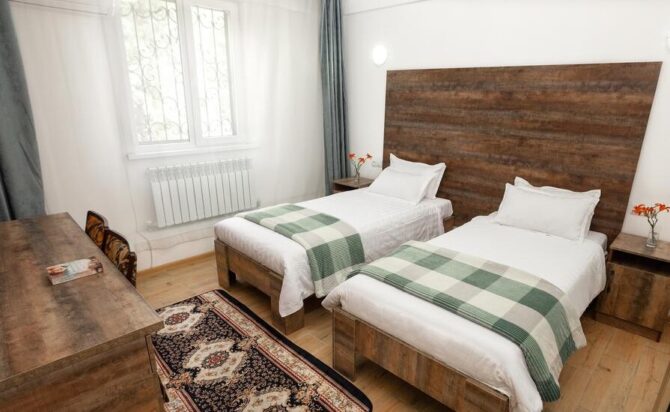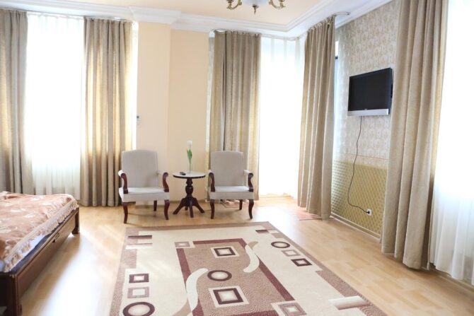 The 4-star hotel in the centre of Almaty has 11 rooms with bedrooms, a kitchen and a dining area. The apartments are decorated in warm colours and feature natural wood floors. The building has a restaurant that specialises in European cuisine. A shared breakfast is served in the morning. If guests do not have time for breakfast, then they form a packed lunch on the road. For guests to relax there is a SPA area with an indoor pool, a gym. Services are included in the payment of accommodation.