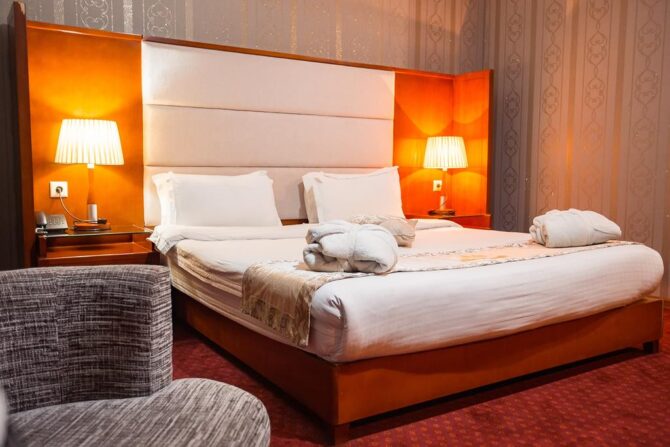 11 km (by highway) from the airport is a multi-storey Royal Palace Hotel. Standard, Twin and Suite rooms are available for accommodation. There are private rooms for smoking and non-smoking guests. Airport shuttle is free. You can use the services of the fleet to move around the city and trips to attractions (inexpensive). The restaurant is open 24 hours a day. Delicious dishes are prepared here, including according to the author’s recipes of the chef. The dining room is located on the 1st floor. It serves a continental breakfast or buffet in the morning. There is no special entertainment in the hotel. This is a place for stopping on the way and temporary residence of business travelers.