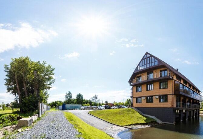 16 km from the airport on the banks of the Ob is a modern hotel complex with a private beach and free parking. This is a chain hotel,ready to provide inexpensive accommodation, as well as a continental breakfast included in the price. All rooms are very bright thanks to the installation of panoramic windows. The large balcony has armchairs for relaxation. On the street there is a small bathhouse with a covered font. You can come here with pets.