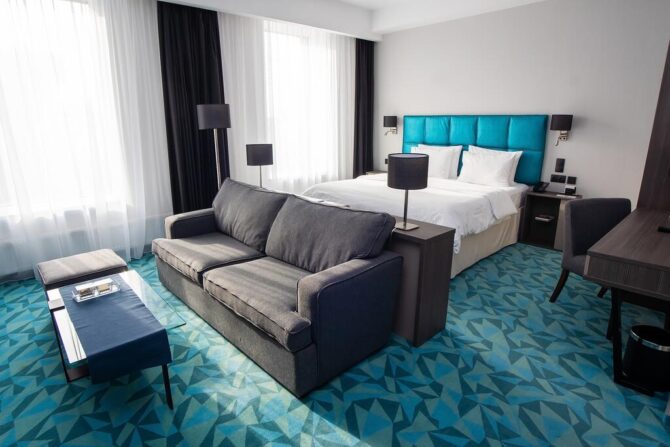 The 4-star hotel in the centre of Novosibirsk offers comfortable accommodation. Among the advantages, it is worth noting the right to free access to the fitness center and saltwater pool in XFit Premium. By joining the Mirotel Club, you can take advantage of other pleasant bonuses. The service is popular in business circles of Novosibirsk. Business meetings are held here, business trips are placed. The hotel is located in the heart of the business and commercial life of the city. There are 2 restaurants on site. One specializes in Italian cuisine, the other serves Caucasian cuisine. In the morning, a continental breakfast or buffet is served, taking into account the vegetarian preferences of the guests. The airport is 16 km away. The location of the hotel in the center of a major transport interchange and proximity to the metro station will reduce the time spent on trips around the city and the road to Tolmachevo airport.