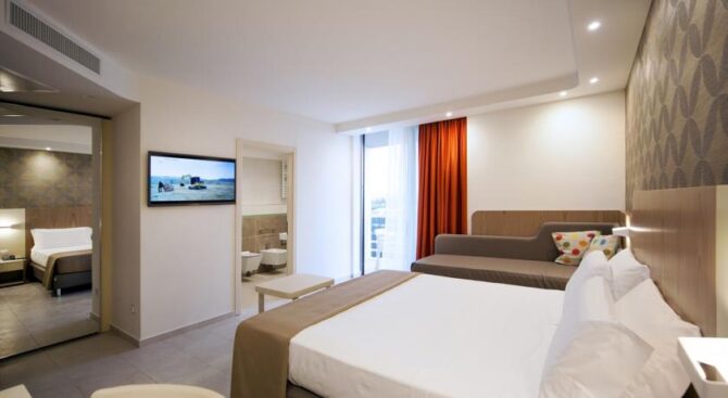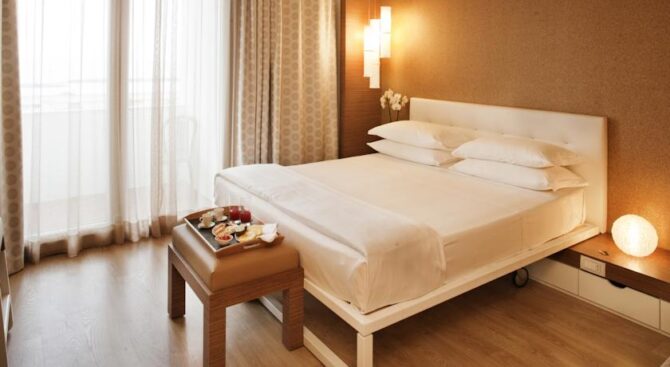 “Amazing stay! The room is very clean and spacious, there is so much light in it, thanks to the large, almost all-walled window. The beach is excellent, clean, there are enough sunbeds, a lot of umbrellas. We also visited the aqua park “Aquafan”, which we reached in 15 minutes. The service in the hotel is on top!”.