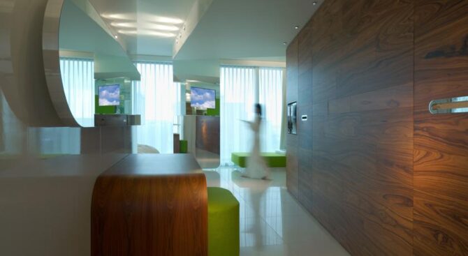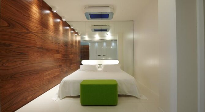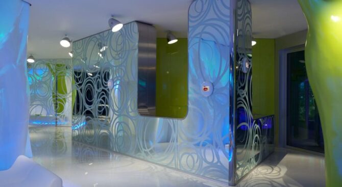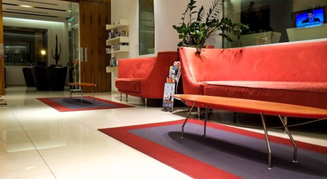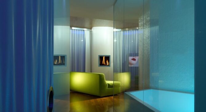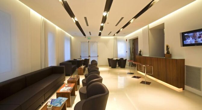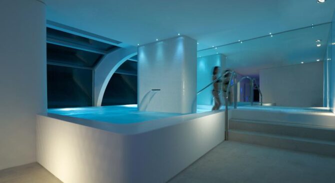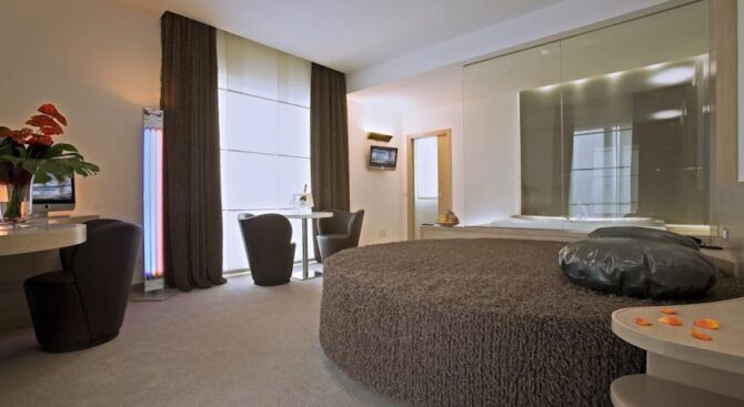 One of the attractive advantages of the i-Suite Hotel is the large rooftop spa. Here, guests of the hotel can not only take a steam bath in the Turkish or Finnish sauna, but also relax surrounded by designer interiors of the recreation area and admire the views of the surroundings through panoramic windows. There is also a unique outdoor pool on site, with hydromassage areas at the corners.