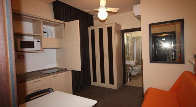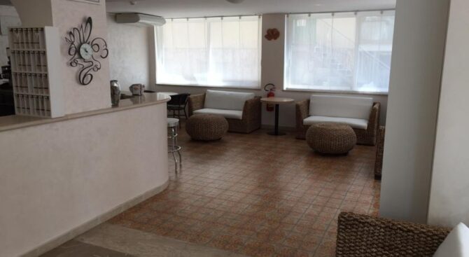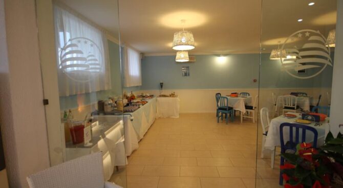 For guests, the hotel’s restaurant serves breakfast with meat and cheese snacks and pastries. And, walking through a small resort area, you can look into any restaurant or café, visit the entertainment center or sunbathe on the neighboring beach at a discount, which is provided to all guests of this cozy hotel in Rimini (Italy).