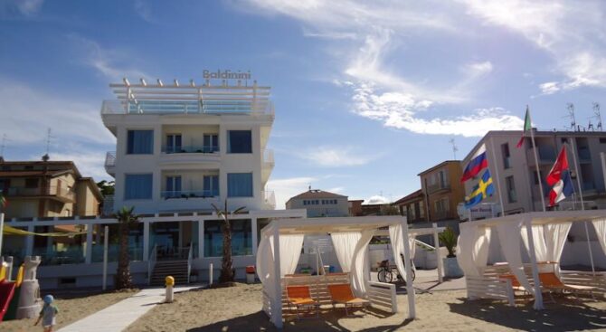 Magnificent hotel on the beach with fine, snow-white sand in the Area of Torre Pedrera. At the entrance to the hotel there is a large terrace with cozy tables, where breakfast is served in the morning in good weather. Baldinini Hotel is a 5-minute walk from the train station, from which there are regular trains to Milan, Verona, Bologna, Turin. There is also a bus stop with bus services to Florence and San Marino.