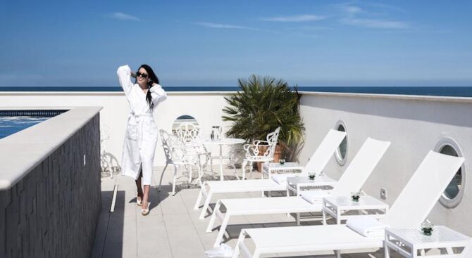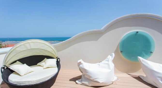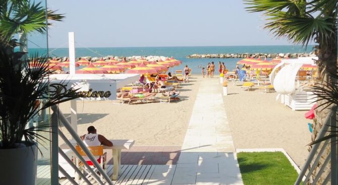 Small but very elegant hotel on the beach in Viserba. Princier Fine has only 10 rooms, so the hotel is always calm and there is no human bustle. Right in front of the hotel entrance is a private beach where guests can sunbathe and swim at any time. Here you can also enjoy a drink at the bar or rent a bicycle and ride along the coast.