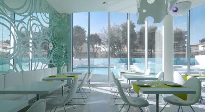 i-Fame is the hotel’s own restaurant. This hotel in Rimini, Italy not only serves breakfast, but also offers delicious national delights throughout the day and evening. The main principle in the preparation of dishes here is the use of only local products.
