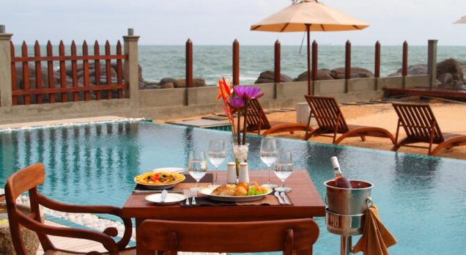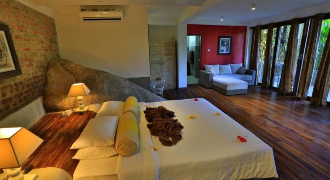 Some distance from the central beach of Unawatuna, in a tropical garden is a four-star hotel Beach Grove Villas. For guests, trips to local historical sites, canoeing, diving and sea fishing are organized here. You can feel a surge of strength after a massage, which is carried out according to the ancient Sri Lankan method. Guests can enjoy a complimentary à la carte breakfast at the hotel’s restaurant. Here you can also order fish and seafood delicacies on the grill. The poolside bar serves aromatic coffee.