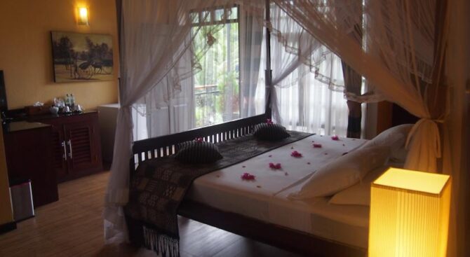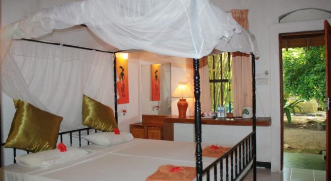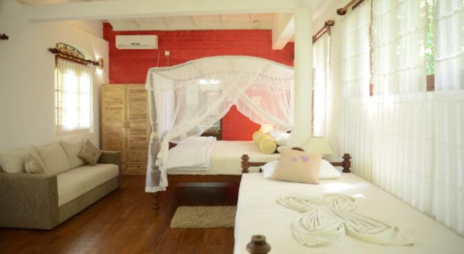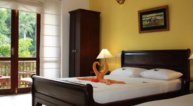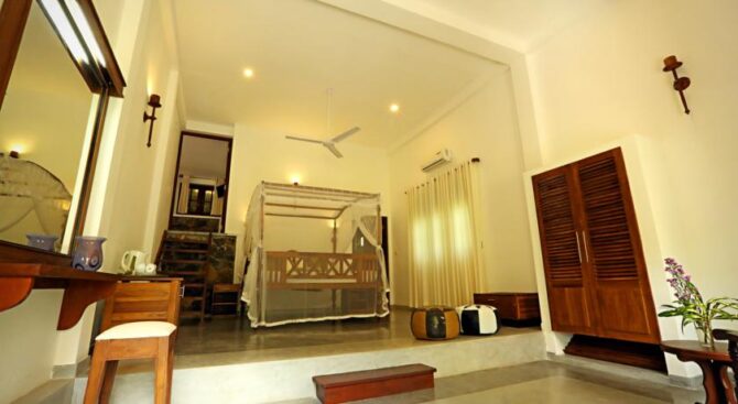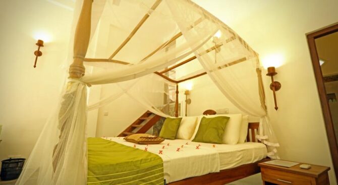 Breakfast is included in the room rate and is served in the hotel’s gourmet restaurant. Its veranda overlooks the tropical landscape. You can enjoy unusual cocktails and traditional tapas in the lounge bar. The hotel has 11 rooms decorated in a classic Sri Lankan style. For the convenience of guests, they are all equipped with a balcony, bathroom, refrigerator and air conditioning.
