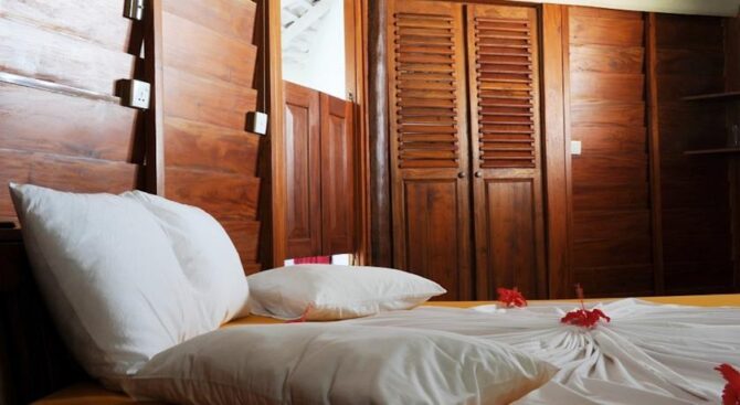 There is a garden next to the hotel. In the shade of tropical plants and palm trees there are comfortable sun loungers. To provide meals, there is a restaurant that specialises in local seafood. The complimentary breakfast consists of a European menu. The hotel has 9 rooms, stylishly decorated with natural wood with comfortable furniture, bathroom, air conditioning, necessary accessories.