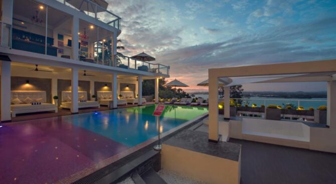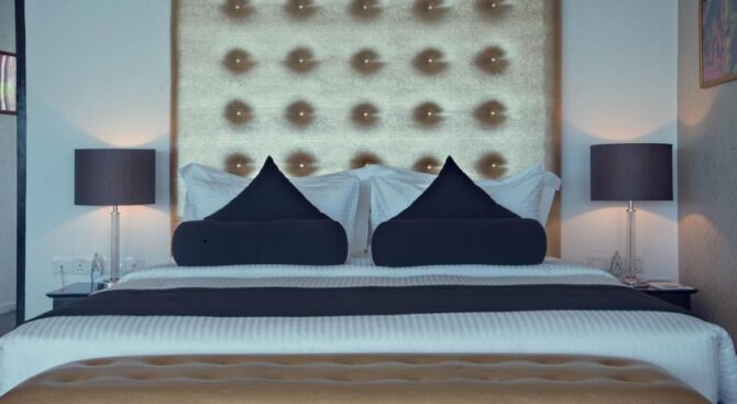 It features a large swimming pool and a lake with lotuses. The spa offers a variety of Ayurvedic treatments, including sharodara and foot massages. The whole atmosphere of the hotel is imbued with tranquility and tranquility, it is good to meditate, do yoga and relax from the bustle of the city.