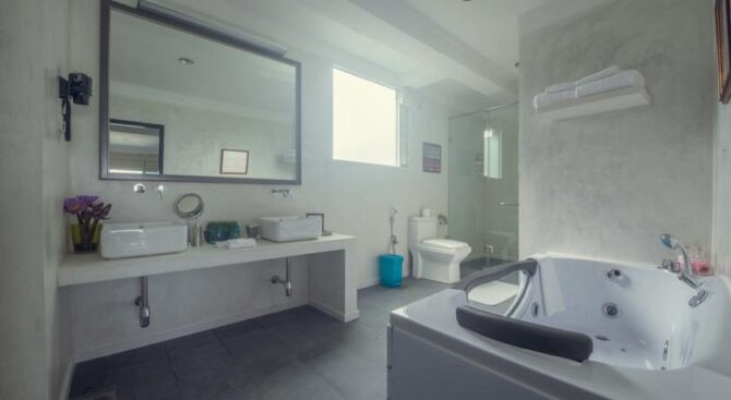 “Great hotel with good service. I was pleased that the room has a jacuzzi. In the rain, large umbrellas were issued. The ocean is not far away. Iron and ironing board are given free of charge. Meet and see off guests with a free cocktail. Overall a decent hotel.”