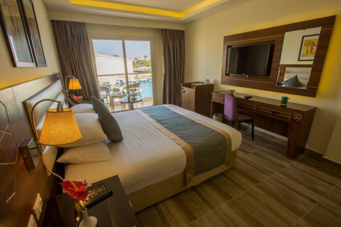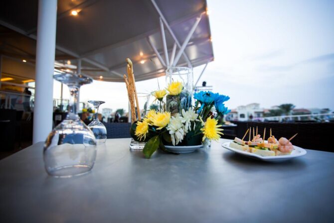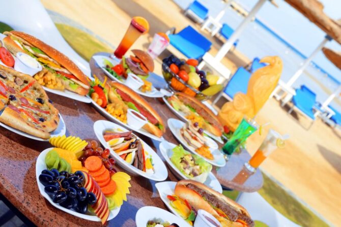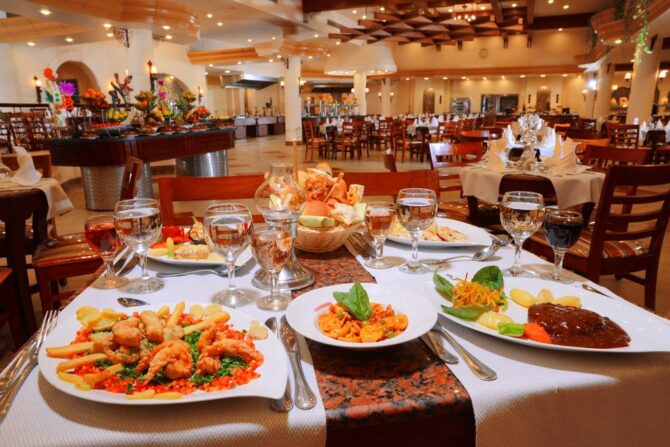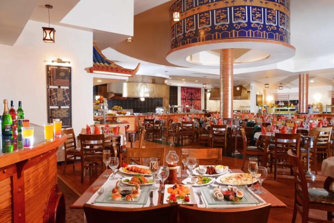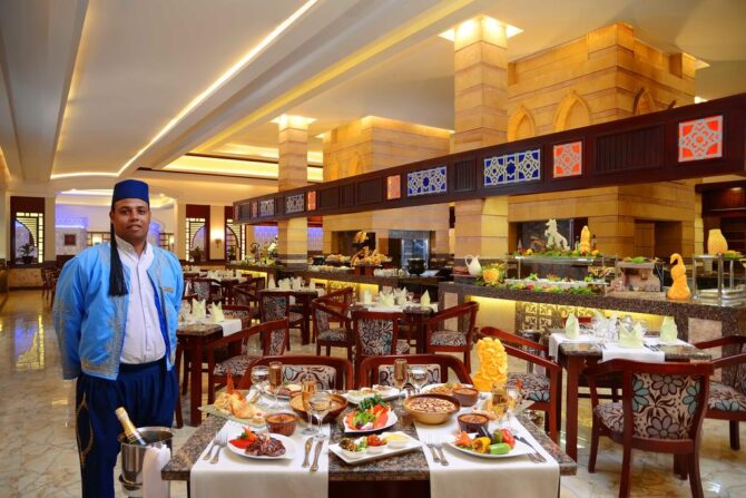 All Inclusive meals, served to guests in a buffet system, which can be found in two restaurants. The choice of dishes is wide, guests are offered to enjoy Mediterranean, Italian and Egyptian cuisine. There are also 8 bars, where guests can enjoy delicious drinks and light snacks. One of them is right on the beach and it offers an incredible view of the sea.