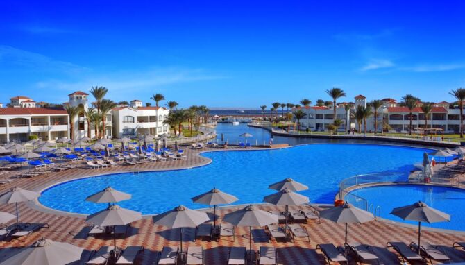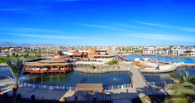 Located on the Red Sea, the Dana Beach resort covers 181 square kilometres of beautiful Hurghada. It consists of a large main building and several detached two-storey buildings. The hotel is open all 4 seasons.