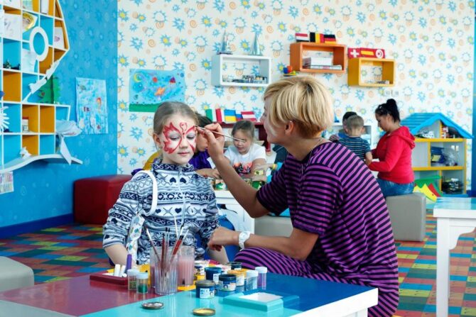 If necessary, a crib will be placed in the room. Children can swim in the special pool, play on the playground, or express themselves creatively in the club.