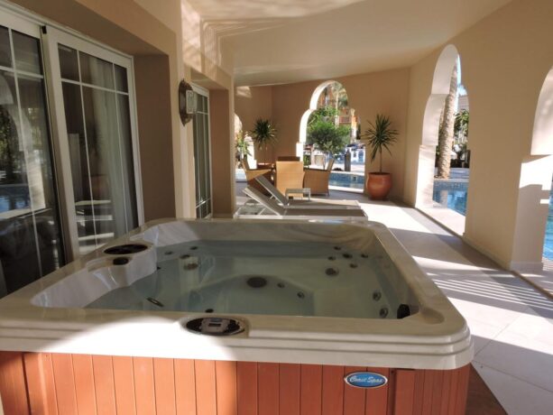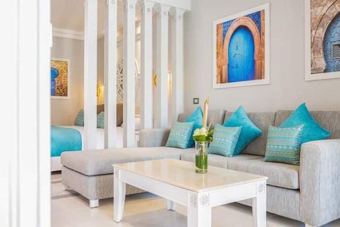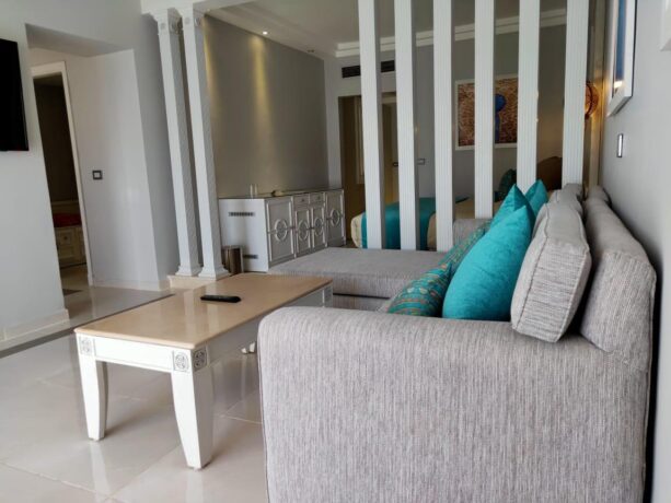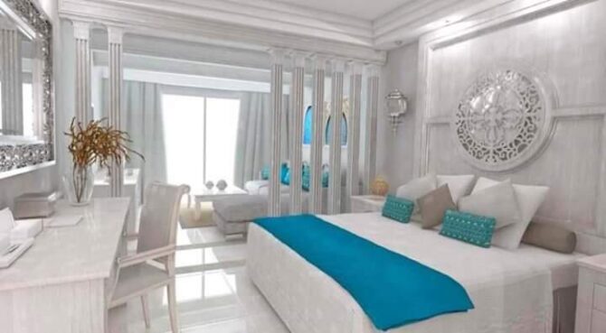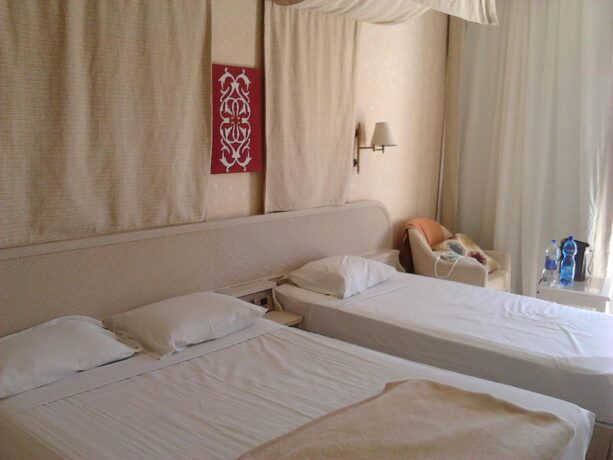The complex includes nine buildings of 2 and 3 floors. Rooms – 550: standard, superior, suite. Each has air conditioning, telephone, mini fridge and bar, cable TV, terrace or balcony with garden, pool and sea views.