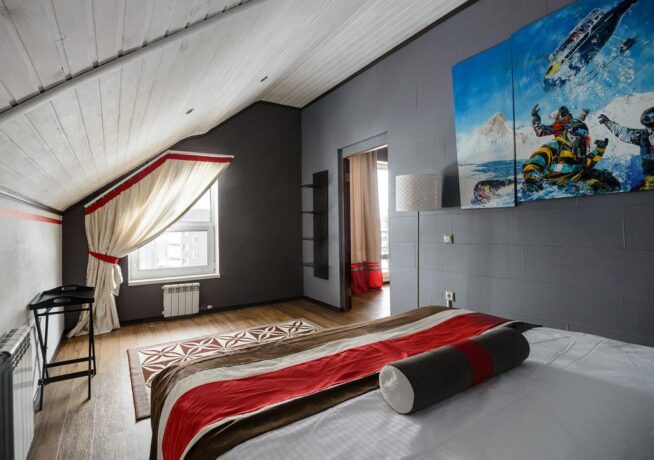 There are no analogues of the two-level three-room standard in the entire Kemerovo region. Since its foundation, the four-storey hotel has become the center of Sheregesh’s party life. The rooms are equipped with everything you need to stay at the resort and practice your favorite sport. Animals are not accepted. You will have to smoke in strictly designated places.