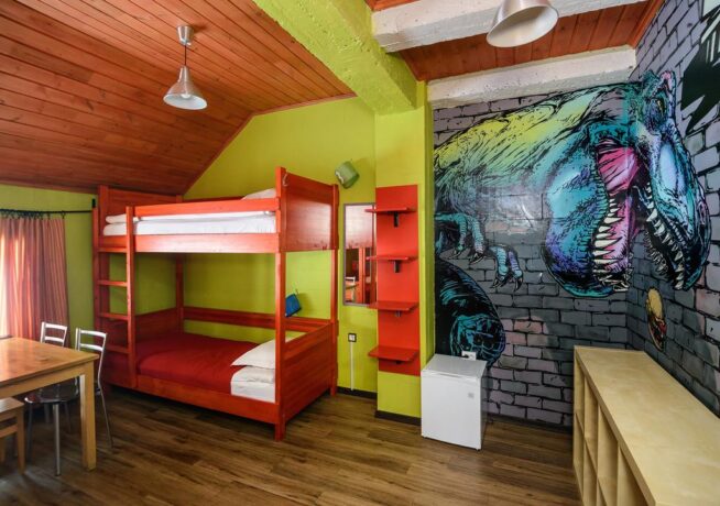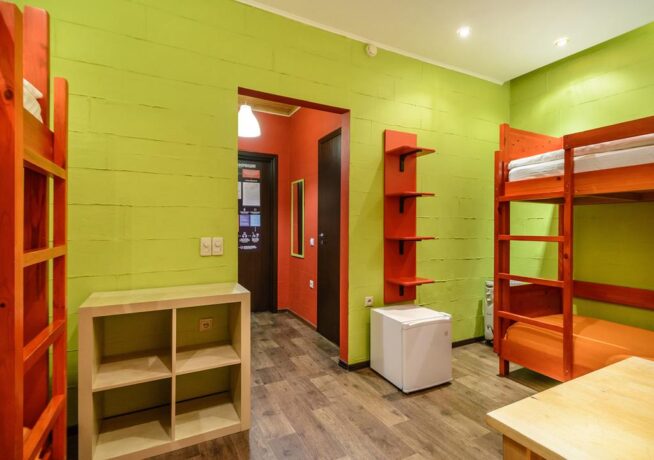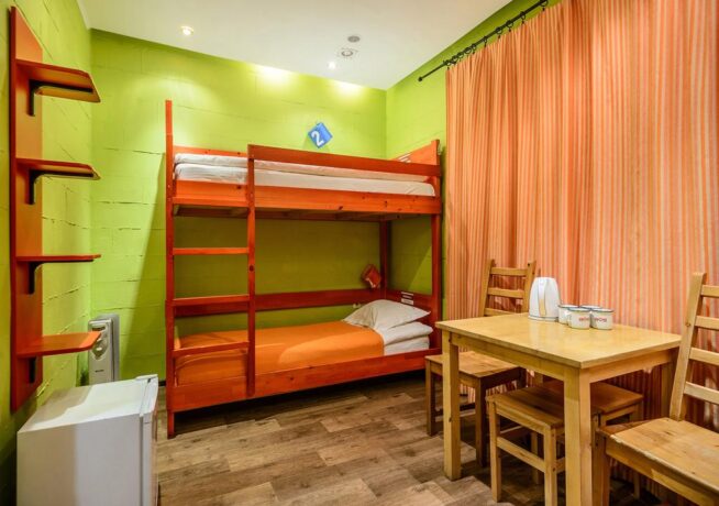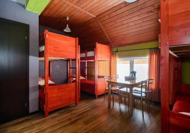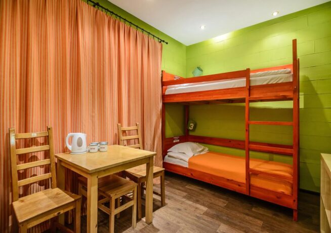 - 3, 4-bed dorm (20 sq. m.) – room with bunk beds. There is a bathroom, kettle, cups, table, stools.