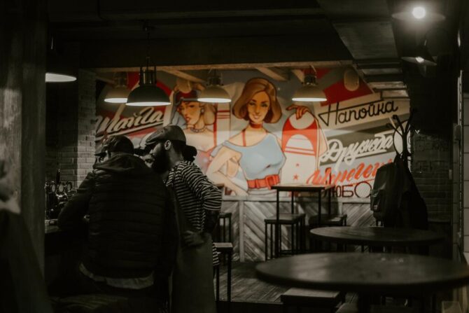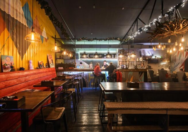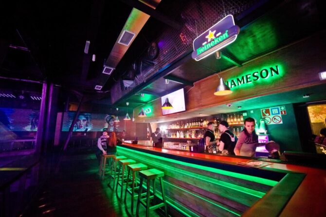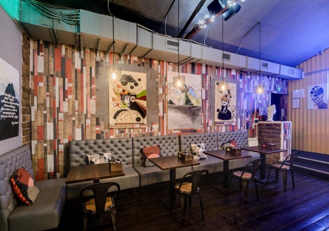 Before going to the nightclub, guests like to visit the bar “Napoika”. Here they prepare food, serve tinctures. The interior is hung with retro posters, and the taste of the dishes from somewhere from distant childhood. After recharging in Napoika, companies go to night parties and a dance floor with sets from famous DJs.