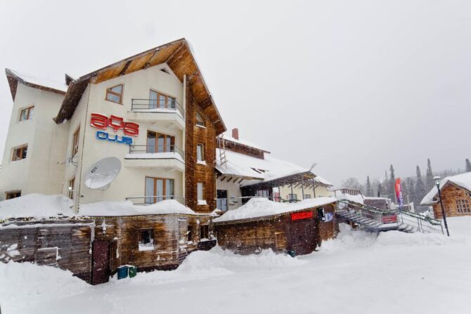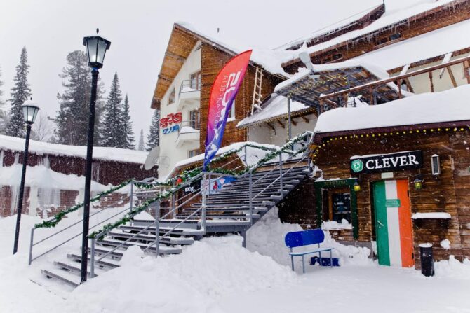 The tourist area is located 5 km from the village of Sheregesh. Club Hotel Ice was created for skiers who love noisy companies and parties until the morning. The fun never ends here, and that’s the concept of the hotel. Affordable prices for accommodation, a full range of hotel services, a dryer for equipment – these and other advantages make the Ice Club in demand among young people, students and experienced skiers who do not age their souls.