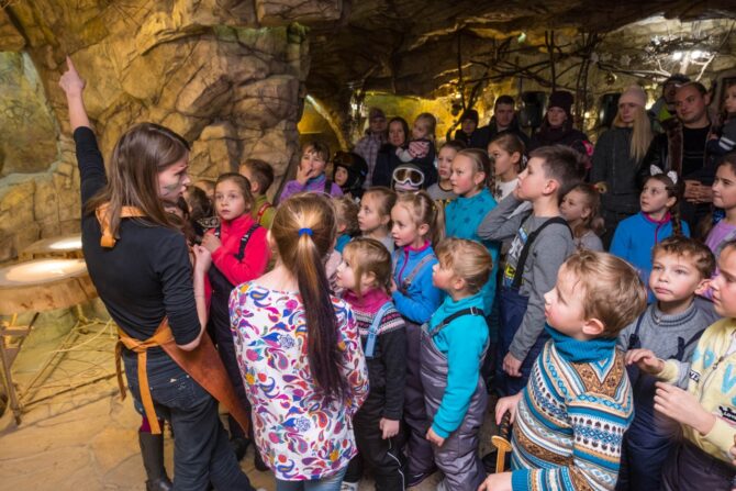 There are no attractions, around only taiga and mountains. Acquaintance with 40-meter pines, caves, slopes from which you can ski, will impress even a skeptical teenager.
