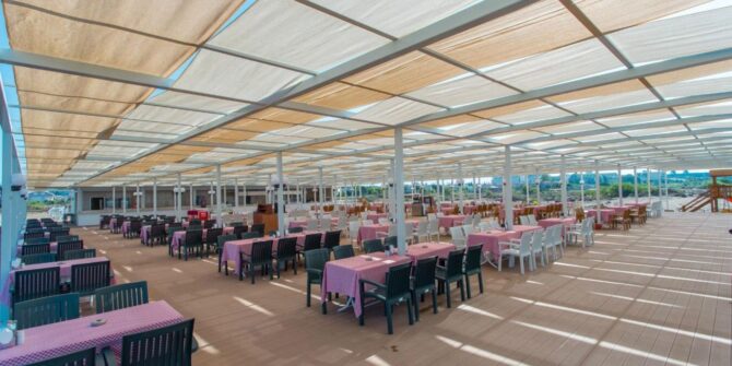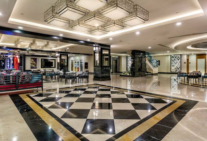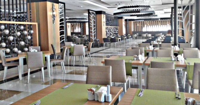 There are also several bars and cafés on site. At five in the morning on the terrace set up tables and treat the early “bird” fresh pastries and tea. No matter what time you check into the room, local chefs and eateries always take care of making sure you don’t fall asleep hungry. The hotel has two restaurants “ala-kart”. They offer their guests Turkish and Italian cuisine. We recommend that you book tables in advance in these establishments, as they are always visited by many people.
