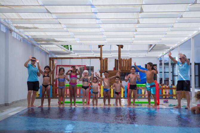 There is always a group of animators working by the pool, who can always teach you water polo, volleyball, mini-football, beach basketball. Not far from the sea coast there is a diving school. Do not like scuba diving – windsurf, ride jet skis, catamarans, bananas and water skiing. You can always ride the slides in the water park. For a relaxing pastime, you can rent a bicycle and drive around the complex. For those who come here by private car, free parking is provided. Wireless Internet access is available throughout the property.