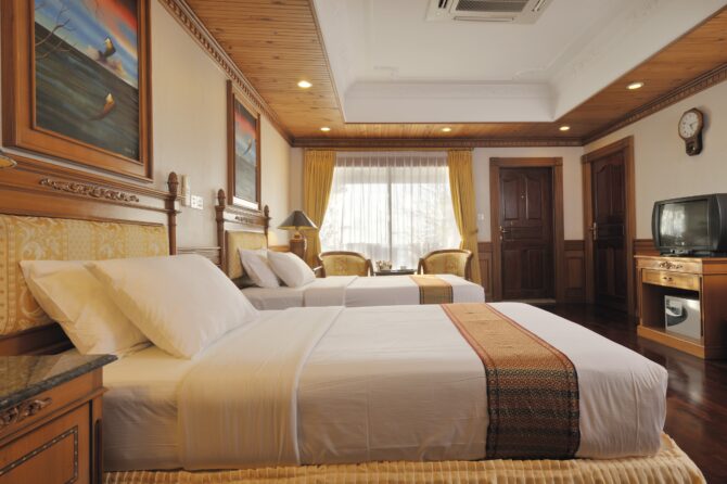 In total, the hotel Sun Island Resort Spa 5 * has about 460 rooms, presented in six different categories. The cheapest here are standard apartments located on the second coastline. Guests of these premises have access to all free services provided by the administration of the institution, a common beach, a swimming pool and a water sports center. Bathrobes and slippers are not provided, while irons and ironing boards are available on request. Employees allow two adults and one child to stay in these rooms only if the baby will sleep on the café, since the rules do not provide for the installation of an extra bed. On request, you can check into similar rooms located in the bungalows. In one building next to you will live up to eight more people. The only difference is that additional beds and cradles for babies are installed here, there are “inconnect” rooms.