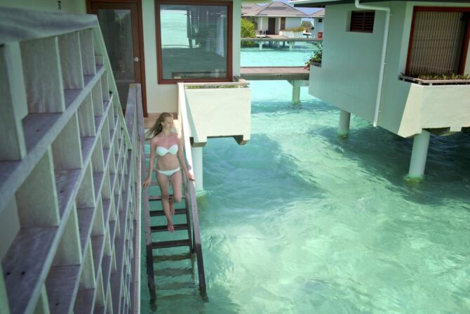 Apartments on the water – beautiful rooms built over the ocean. To build these buildings, specialists had to erect piles. The setting inside is very nice, the design is unobtrusive but very cute. Light colors, marine themes, an abundance of natural materials, a beautiful view from the windows – is not the limit of the tourist’s dreams?