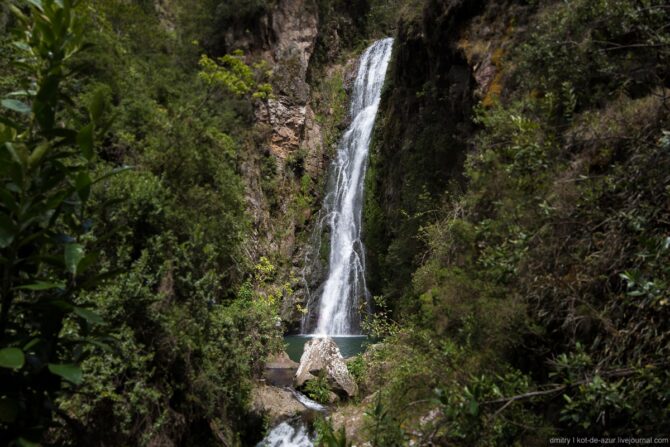 The waterfall itself is located at an altitude of 1703 meters above sea level. Water falls from a height of more than 80 meters. The water temperature does not exceed +12 degrees. Swimming here is not recommended. You can admire the beauty of this natural attraction from the observation platforms. On all sides, the waterfall is surrounded by jacaranda trees and pine forest.