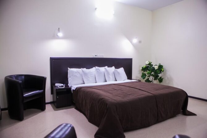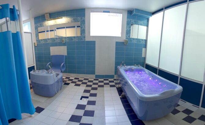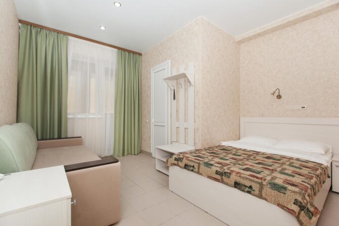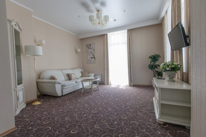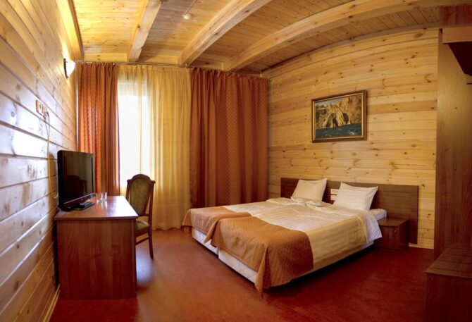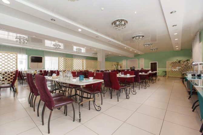 Another option for rest between flights offers a sanatorium complex “Nehama”, located in the village of Petrovsky. The airport is 14.6 km away. You can spend the night in single and double rooms. If you stay for a few days, it is better to book a junior suite with included treatment services. The spa dining room is responsible for meals. In the morning, a buffet is served. Special diet meals are negotiated additionally at the time of booking or check-in. For lovers of kebabs, accessories for barbecue are issued. Other facilities include a swimming pool, a small zoo, a tennis court, a fitness room and evening entertainment.