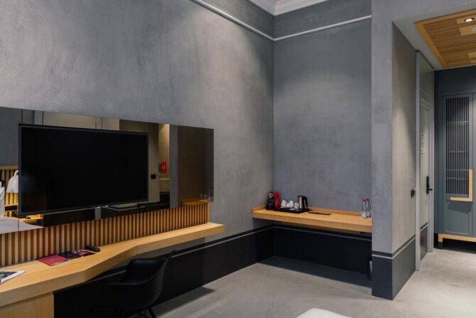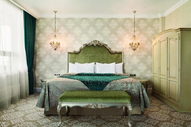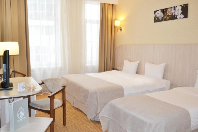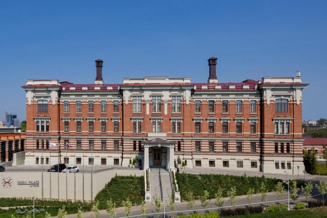 This 5-star hotel is located in the centre of Kazan, close to the Kremlin. Access to the swimming pool and gym, breakfast is included in the accommodation. Guests have free access to the spa complex, which includes a Turkish hammam, a Finnish sauna and a steam bath. The building has 5 floors. On the first there is a restaurant “Topaz”, a lounge bar “Kazanda”, a bar “Palace”, a beauty salon and meeting rooms. There are 3 guest elevators. The hotel has a museum-gallery dedicated to the history of the Shamov family. They built this building for the city hospital more than 100 years ago. Subsequently, the clinic moved to a modern complex, and a comfortable hotel was opened here.