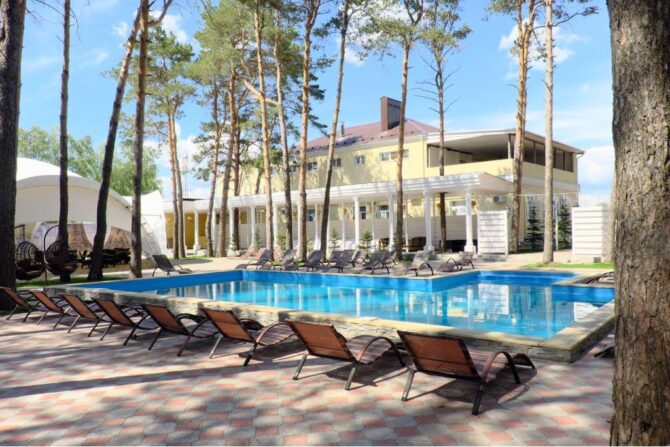 Country hotel complex is located in the village of Sandy Kovali. The airport is 9.8 km away and is surrounded by a natural area. There is clean air, silence and all conditions for a good rest. In particular, comfortable double and luxury rooms are provided for accommodation. Guests can swim and relax in the seasonal outdoor pool with equipped seating area. The on-site restaurant specialises in international cuisine. In the morning, it offers an à la carte breakfast. Free parking is provided.