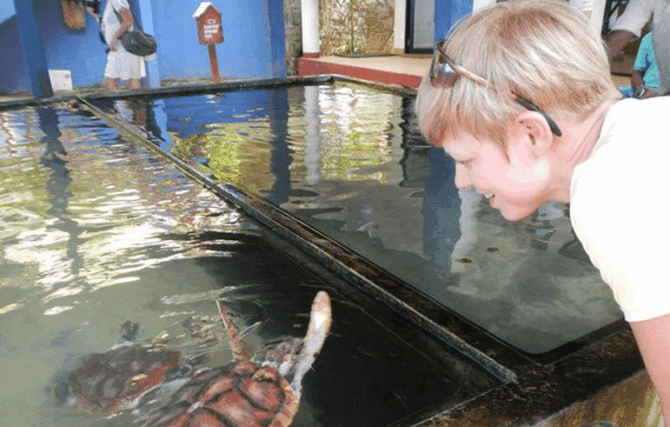 On the farm, in addition to babies, large turtles also live. Usually they are found by employees in a wounded state. They are nursed and then released into the wild. You can take pictures and play with them while they live on the farm. You can catch the procedure for releasing three-day-old babies into the ocean in the afternoon. Turtles are usually released at sunset. The cost of a half-hour procedure costs 2 thousand rupees. The usual entrance ticket at the price is the same for all turtle farms on the island – 500 rupees. Next to the farm is a small landmark of Koggala – an old British passenger plane. Inside there is a café and a children’s playground nearby.