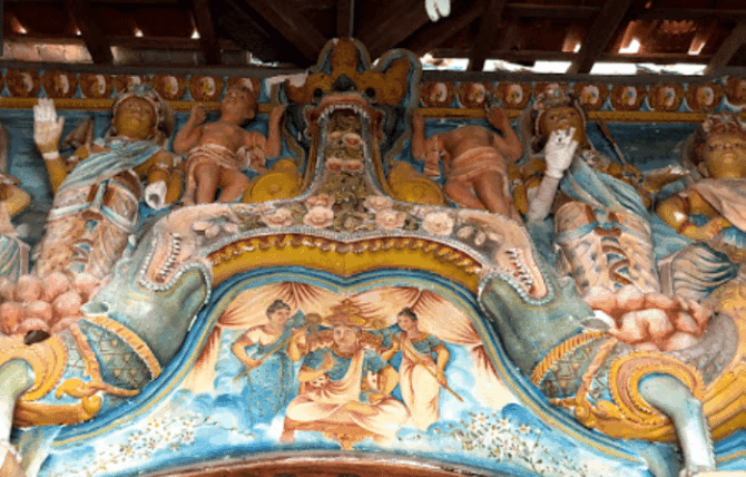 Outside the resort village is the Buddhist temple of Kataluva Purwarama Maha Viharaya. It was built in the 13th century. It was erected according to the traditions of the Middle Ages, using bright colors and numerous paintings from the life of the Buddha. The sanctuary is well preserved and open to the public. The place is popular due to the frescoes made by ancient masters. They are an example of painting of the Kandyan period. Wall paintings were created over 200 years. They reflect 500 episodes of Jakata (chronicles of the life of Siddhartha Gautama and the past lives of the Buddha).