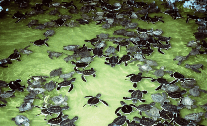 One of Sri Lanka’s many turtle farms is located on a stretch of Koggala Beach. Every year, 3 species of sea turtles come here to lay eggs and continue their genus. For local children and fishermen, the collection of turtle eggs is an additional income. They collect clutches and bring them to the farm, where specialists again bury the eggs in the sand and wait for the appearance of turtles. Then they are kept on the farm for another three days in special pools. This is necessary in order for the individuals to become a little stronger. Then they are released into the ocean. After 30 years, they return to Koggala beach to make their own masonry.