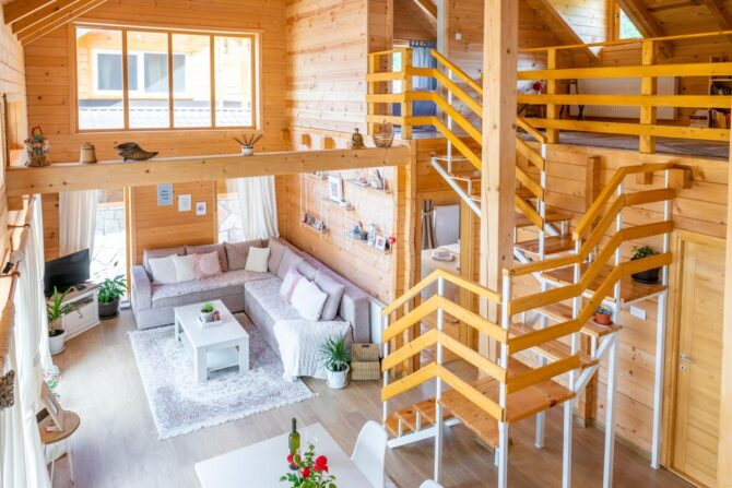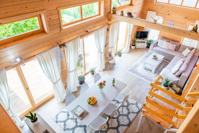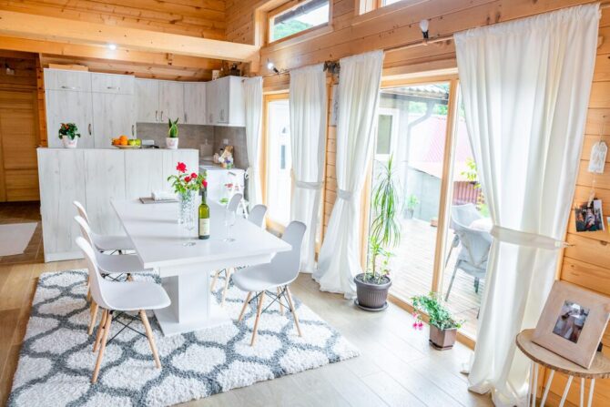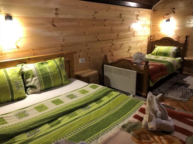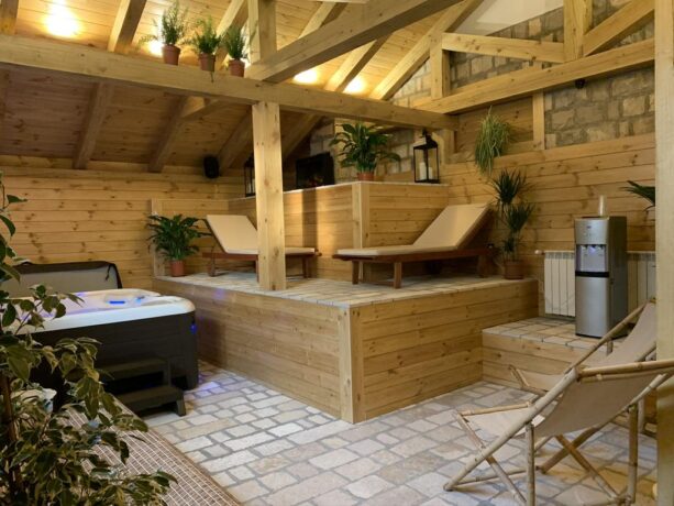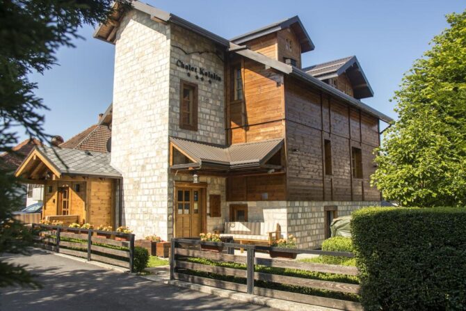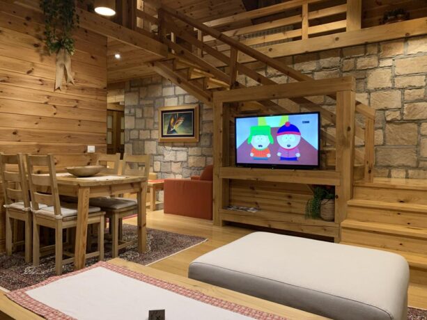 Authentic chalet with wooden and stone interiors and cozy furniture will make your stay unforgettable. It offers a free spa.