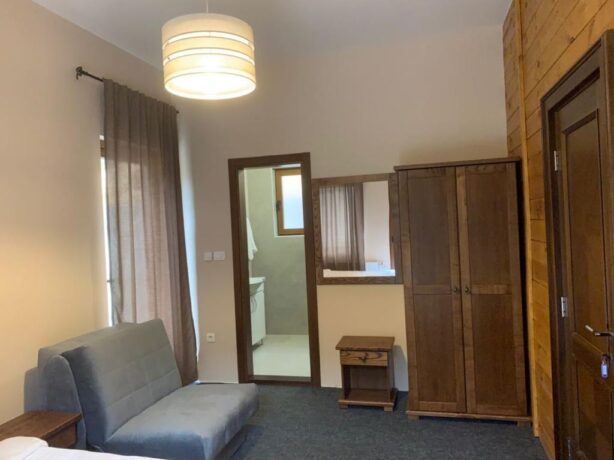 For comfortable accommodation, only one type of room is offered – a villa. Each room has amenities and soundproofing. The windows of the rooms overlook the garden, mountains, city.