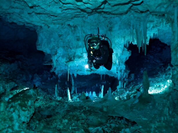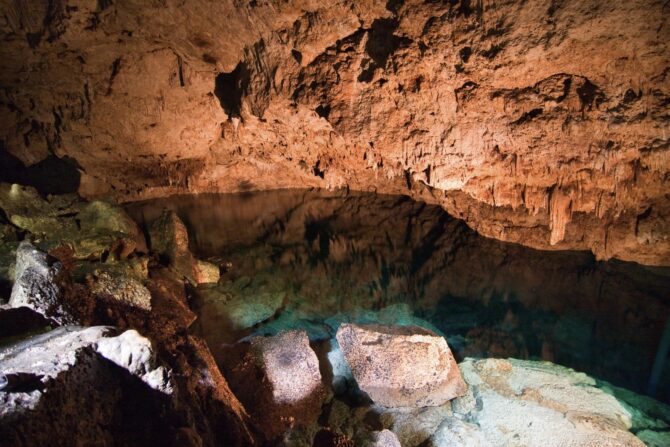Just 850 m southwest of the cave del Chico is the Cueva Padre Nuestro. The natural site is also often visited by divers. The name of the cave can be translated as “Our Father”. The length of Cueva Padre Nuestra is 200 m, the depth is up to 20 m. Inside the cave you can see several objects that are interesting for curious travelers: