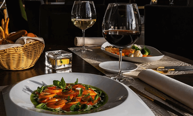 Do you want to spend a pleasant evening in a restaurant? Book a table and enjoy the author’s dishes of Russian, Italian and European cuisines. For dinner, you can choose a decent wine – the choice is huge.