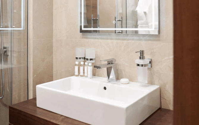 A good 4 star hotel is simply obliged to have a first-class gym and spa complex, and“Lakhta Plaza”is no exception. Everyone who monitors their health and wants to be in good shape, during his stay visit the beauty salon “Crystal & Wellness” – a modern health complex. The room itself is so stylish and beautiful that it is a pleasure to be here. The halls of the salon are completely mirrored, which significantly increases the room, the interior is made of wood and natural stone.