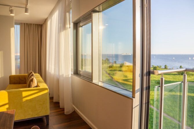 The hotel offers accommodation of more than 100 rooms of different comfort, with unique interiors and service at the highest level. Almost all rooms offer views of the endless Gulf of Finland.