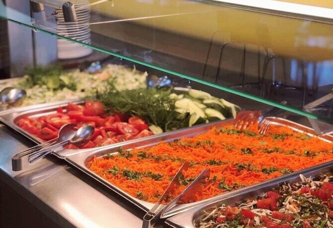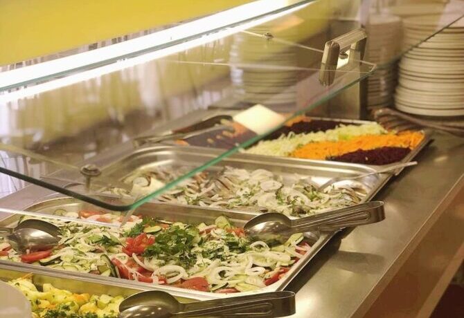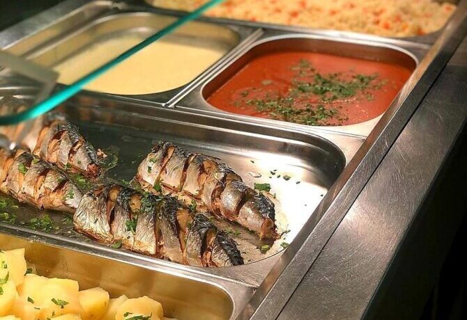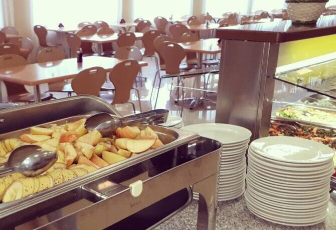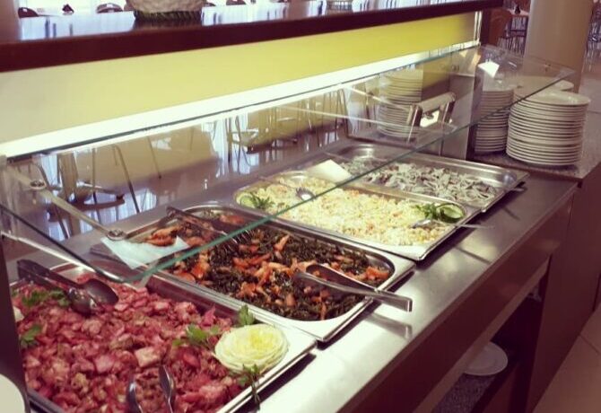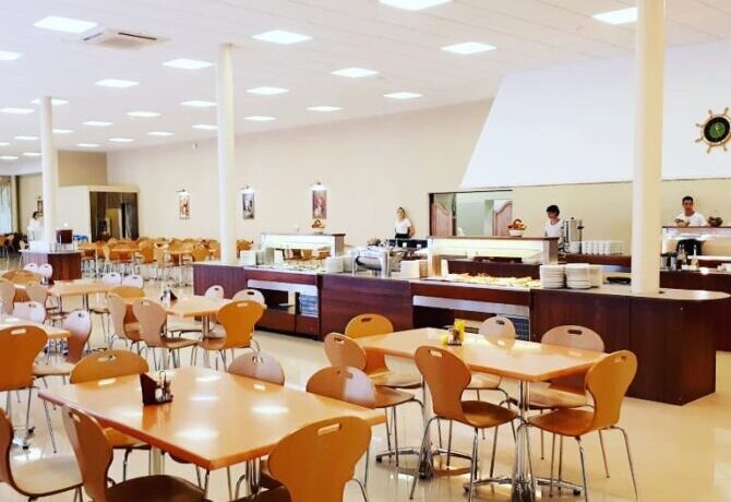 All guests of the boarding house live on full board, which includes 3 meals a day in a large modern dining room with 450 seats. The “buffet” system allows you to choose exactly what every visitor wants today. The menu is very diverse, including dietary and vegetarian dishes. There is no special children’s menu, but there are always dishes that are prepared taking into account the needs of baby food. A lot of fresh salads, fruits, desserts, drinks.