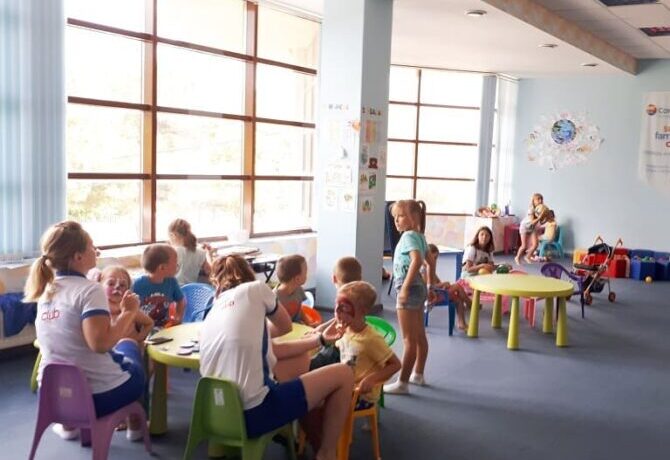 For children, there are various quests and competitions under the guidance of animators, there is a children’s center with a playground, where a professional educator is engaged with children, water slides in the pool.