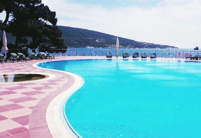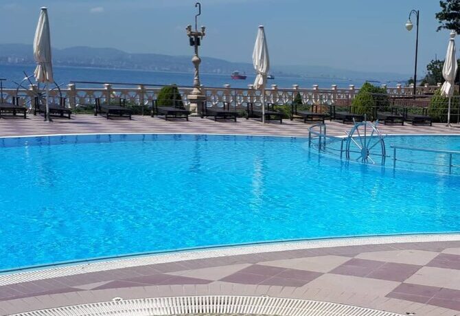 Inside the boarding house there is also a large (460 m2) freshwater pool of cascade type. Most of it is given to adults, but some is separated for children. In this department there are water slides, which are very fond of young guests of boarding houses. Next to the pool is a jacuzzi. The water in the pools is not heated, but in the jacuzzi on the contrary.