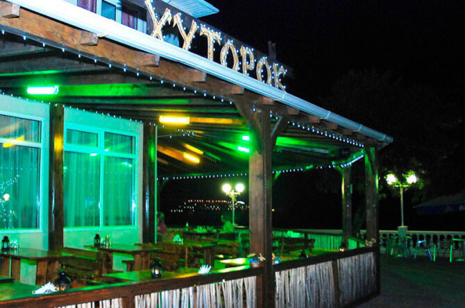 It is worth a look in the café-bar “Khutorok”. It serves mainly dishes of Ukrainian cuisine and the design is sustained in this style. Some of the tables are located on the outdoor terrace, which offers stunning views of the sea. Also on the menu there is a good selection of European cuisine. It is pleasant to spend time with the whole family and with friends.