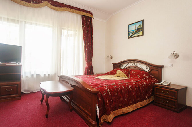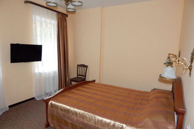 The boarding house has a large selection of rooms of different plans and comfort levels. All rooms are equipped with air conditioning, TV, minibar. There is a bathroom and a shower. All in all, a very pleasant environment. Most rooms do not have balconies. For some guests, this is a significant drawback, but taking into account the specifics of the boarding house, this is rather a plus.