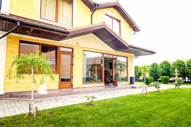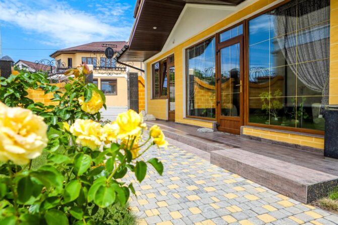 The nearest beach is about 400 metres away. All coastal zones of the Black Sea are equipped with umbrellas, canopies, changing cabins, toilets, fresh shower. At the rental office you can take a sun lounger, a large water mattress, a children’s pool. The beach area is quite wide, cleaning is carried out every day. The entrance to the water is convenient and gentle. The coating is sand. Safety is monitored by the rescue service. On the edge of the beach there are 2 volleyball courts, there is a pier for pleasure boats. The swimming season begins in May, because shallow sea quickly warms up.