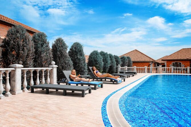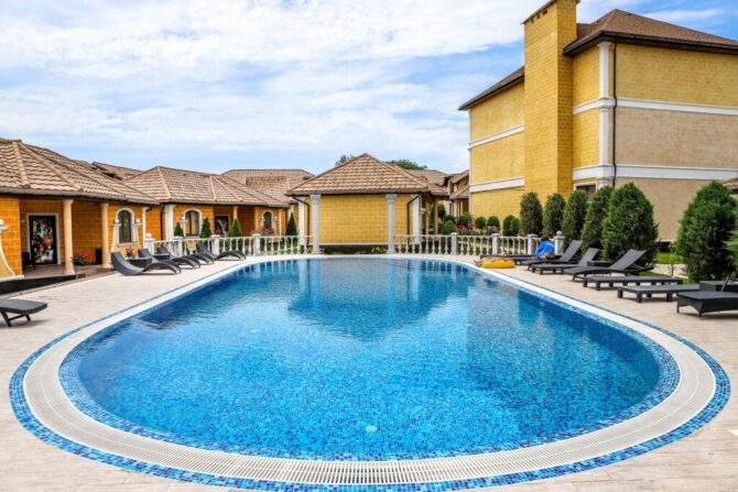 The management of the hotel took care of the organization of leisure of its guests. Even without leaving the territory of the complex, you can find a lot of useful entertainment. In the first place in popularity is rightfully a Russian bath. The steam room is made of cedar. The stove is heated with firewood. All accessories (scoops, ear) are made of wood. Brooms are hung right under the ceiling – whatever you like, you can take. The lounge has a wooden table and benches. Medicinal tea from the collections of Crimean herbs is served.
