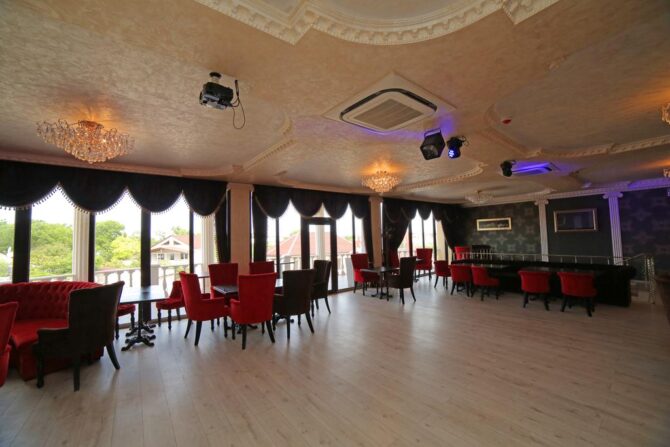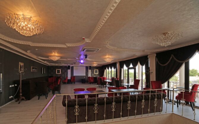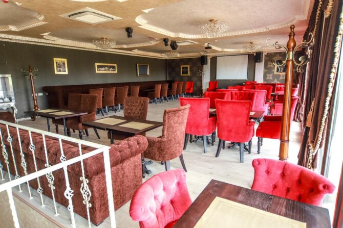 On the second floor of the restaurant there is a karaoke club. At the service of lovers of singing – a large screen, professional sound, a large menu of songs. The hall serves the kitchen of the restaurant, there is an evening menu, alcoholic beverages. From the hall there is an exit to a spacious balcony.